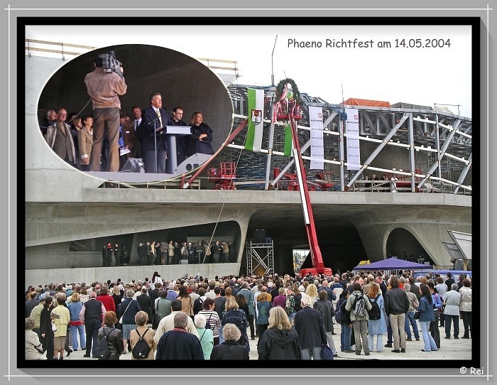 Am Mikrofon der damalige Oberbürgermeister Rolf Schnellecke und ganz rechts die Architektin des Phaeno: Zaha Hadid |